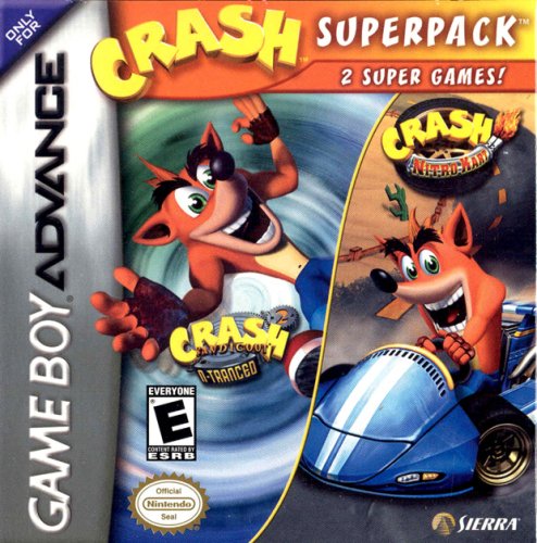 The Crash Super Pack brings together two of the best kart racing games available for your GBA -- both of which happen to have Crash Bandicoot, one of the wildest characters in gaming! With Crash Nitro Kart you'll race against Cortex and his minions in hopped-up kart racing action. In Crash: N-Hanced you'll reach incredible speeds and face the wildest obstacles on the fastest tracks. 3D characters and environmentsCrash SuperPack Specifications